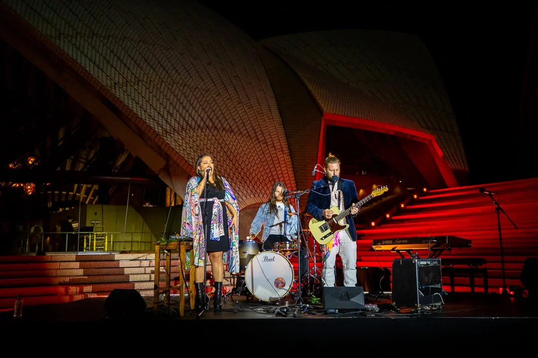 They've played many major festivals throughout Australia including Parrtjima, Homeground, Byron Bay Blues Festival, Adelaide Fringe, Boomerang Festival, Spirit Festival, Bigsound, Blaksound and SXSW Opening Concert and major venues like The Factory, The Museum of Contemporary Art, Parliament House and The Australian Museum for their Ngalu Warrawi Marri (We Stand Strong) and Australia's First People exhibition. They have performed at The Sydney Opera House every year and garnered the nickname as 'The Sydney Opera House House Band' for 'Badu Gili' and they also did an extremely rare live from the Joan Sutherland Opera Theatre performance during lockdown for their 'Our House To Yours' digital special. They've also performed live on NITV many times with the Jan 26 'Sunrise Ceremony' (NITV and Channel 10 and broadcasted internationally to NZ and Canada) delivering their blues version of Archie Roach classic 'A Child Was Born Here' and a performance of their single '7 FORCES' on Big Mob Brekky being highlights.